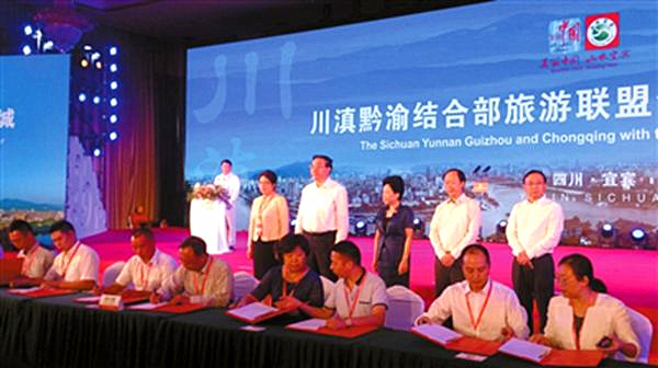 開幕式剛剛結束,川滇黔渝結合部旅游聯(lián)盟推介會暨旅游產(chǎn)業(yè)項目簽約儀式就成為各方關注的焦點。四川省宜賓、瀘州、自貢、內(nèi)江,貴州省遵義、畢節(jié),云南省昭通,重慶市江津區(qū)等8個市(區(qū))旅游部門的代表向參會嘉賓介紹了各自的旅游資源和旅游產(chǎn)品。