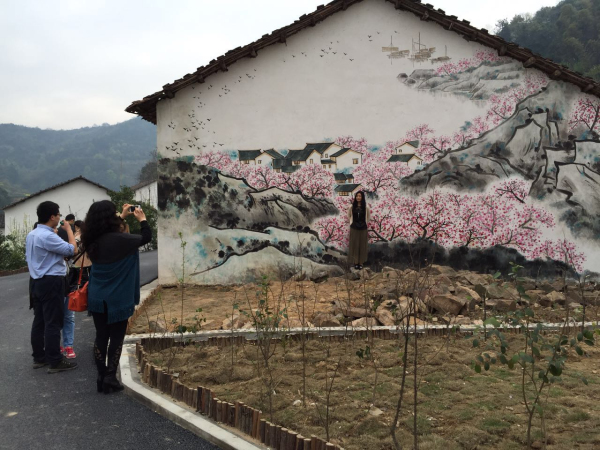 自2013年省旅游局啟動(dòng)快樂鄉(xiāng)村游活動(dòng)以來,內(nèi)容更豐富了,開始是以花為媒,推薦鄉(xiāng)村賞花觀葉的線路,現(xiàn)在還是以花為媒,把鄉(xiāng)村最美的的旅游元素——花(葉)畫在墻上。搭配宣傳鄉(xiāng)村美食,更有吸引力。麻城龜峰山書記洪俊波表示,龜峰山的旅游口號是“人間四月天,麻城看杜鵑”,其實(shí)龜峰山四季都值得游覽,即使不在花期,來爬爬山,吃吃吊鍋,品品墻繪,都是享受。羅田徐鳳沖村的村長說,“來我們村畫畫都是幾個(gè)年輕人,剛好畫的時(shí)候下了幾乎一個(gè)月的雨,村民們自發(fā)組織到山上砍毛竹做腳手架,為畫高層的墻繪提供幫助,熱情地招呼畫師到自己家吃住。這樣的好事我們村求之不得啊?!?