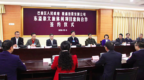 巴南網(wǎng)訊 (記者 張應(yīng)友) 12月3日,記者從隆鑫·東溫泉文旅休閑綜合開發(fā)項(xiàng)目意向合作簽約儀式上獲悉,重慶隆鑫控股有限公司(以下簡(jiǎn)稱隆鑫)將投資100億元建設(shè)東溫泉文旅休閑綜合開發(fā)項(xiàng)目,將東溫泉打造成世界知名旅游度假勝地。區(qū)委書記李建春,區(qū)人大常委會(huì)主任李俊文,重慶隆鑫控股有限公司董事長(zhǎng)涂建敏,區(qū)委常委、政法委書記周存開,副區(qū)長(zhǎng)范勤參加簽約儀式。