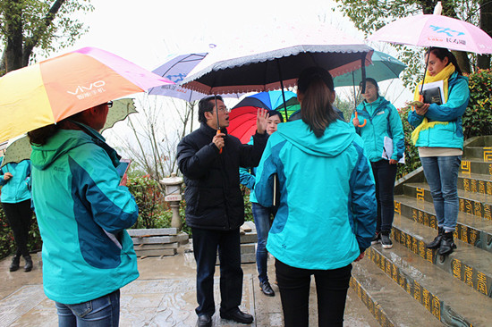 12月15日,院長李永明一行到長壽區(qū)菩提山風景區(qū),對景區(qū)導游進行《中華長壽寶典導游詞》的專題培訓。當天氣溫驟降,李院長帶領十多名導游,冒雨迎風,從山腳景區(qū)大門起步一路拾級而上直達山頂,用兩個多小時時間,比照一個個景點及相關導游詞,考察導游們對導游詞熟悉領會、把握講解情況,并多次模擬示范,深入淺出講解,并根據(jù)景點實際添加新鮮內(nèi)容。導游們學習非常用心,一致評價李院長的導游詞寫得有文采,講得更生動,她們熟悉導游詞的過程不僅僅是為了工作,更是學習中華文明、了解重慶和長壽地脈文脈與歷史人文、豐富知識和人生的寶貴機會。
