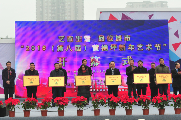 2015 年12月31日上午,2016(第八屆)黃桷坪新年藝術節(jié)在四川美術學院黃桷坪校區(qū)運動場盛大開幕,重慶市旅游局局長劉旗,重慶市文化委副主任雷平,四川美院黨委書記黃政、院長龐茂琨,九龍坡區(qū)委書記丁洪,九龍坡區(qū)委副書記、區(qū)政府區(qū)長石繼東,九龍坡區(qū)人大主任潘平,九龍坡區(qū)政協(xié)主席鄭和平,九龍坡區(qū)委常委、副區(qū)長劉小強,九龍坡區(qū)委常委、宣傳部長王南,九龍坡區(qū)委常委、區(qū)委辦公室主任顏朝華,九龍坡區(qū)人大副主任曾熔,九龍坡區(qū)政府副區(qū)長戎蓉,九龍坡區(qū)政協(xié)副主席孫夢等領導和嘉賓出席了開幕式。開幕式由四川美院黨委副書記左益主持。