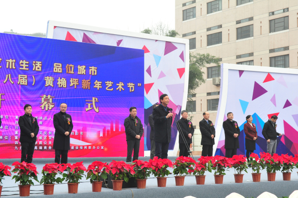 市旅游局長劉旗宣布2016(第八屆)黃桷坪新年藝術節(jié)正式開幕。